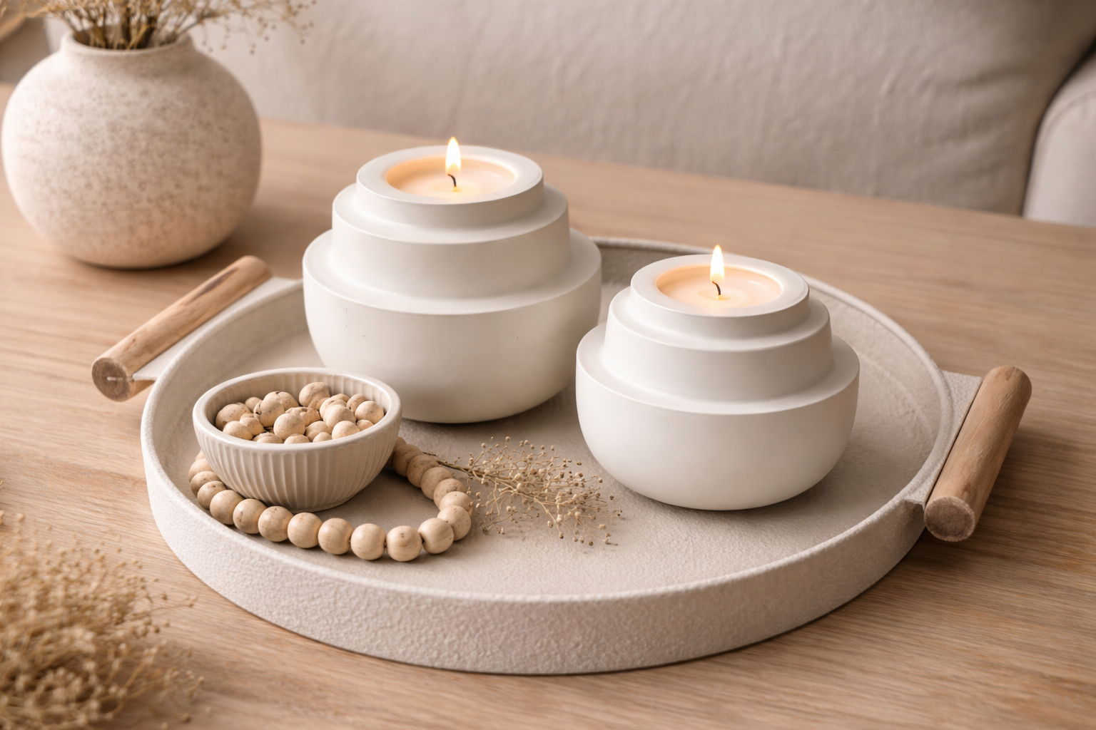 Dit elegante dienblad in mat crème tint is een echte must-have voor een rustig en sfeervol interieur. Perfect om te stylen met kaarsen, sierboeken of andere accessoires op je salontafel, dressoir of eettafel.